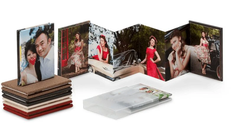 Up to 12 images of your choice printed on archival lustre paper in a 3x3 accordion-style mini-book. Front and back magnetic covers and frosted protective slip cases to accompany each book.